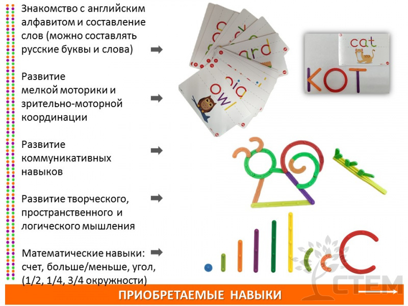 Палочки счетные Геостикс (200 дет.). Конструктор слов с карточками (23 шт.)